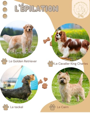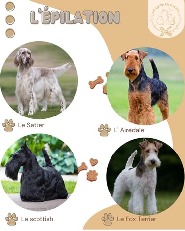 Il existe plusieurs méthodes de toilettage, comme l'épilation, la tonte, la coupe... Cela ne dépendra que de la texture du poil de l'animal.